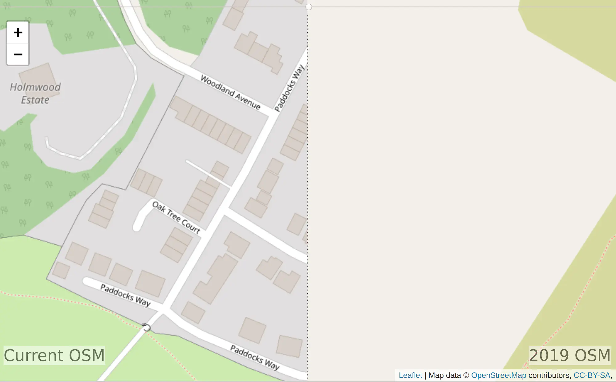 In an ideal world, I can picture a screen with two maps, with one on top of the other, each with a date picker. There would be a slider which can be moved from one side to the other to show the differences between them. This layout is inspired by the currently out of service OSM Then and Now, which goes some of the way towards a solution, but the data shown is too old to be useful for me.